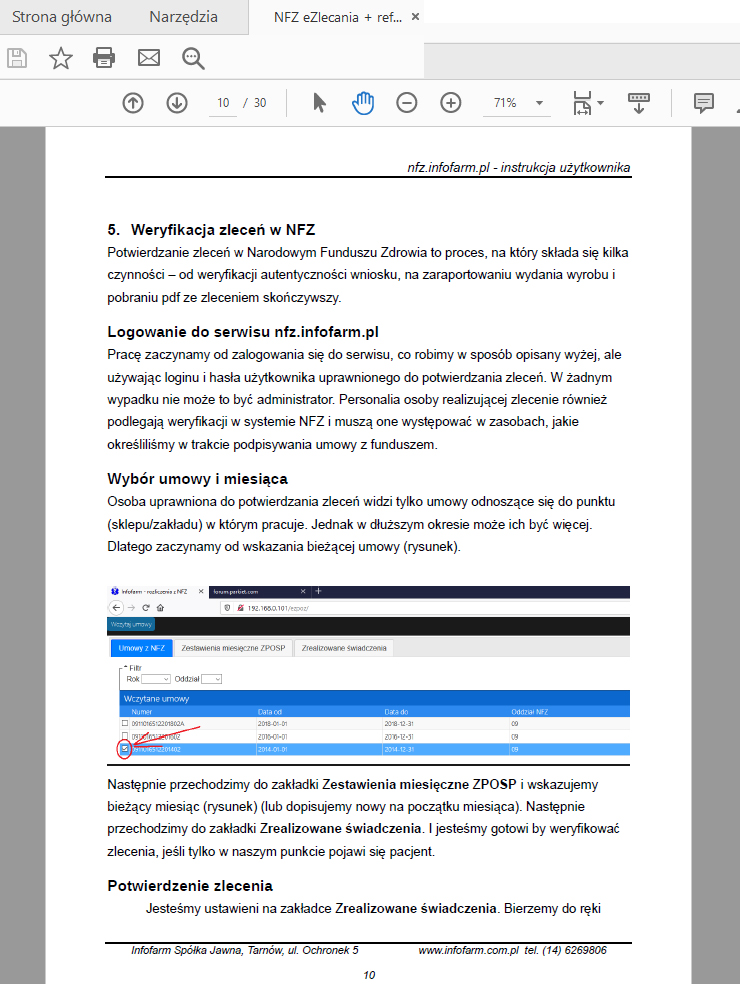 - 1.2. Serwisie - rozumie się przez to serwis internetowy NFZ.infofarm.pl, umożliwiający korzystanie z usług, o których mowa w punkt 4.